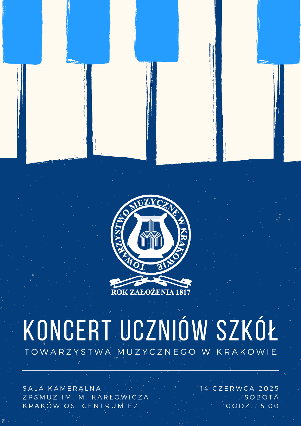 Jesteśmy stowarzyszeniem, którego celem jest upowszechnianie kultury muzycznej w Krakowie i regionie małopolskim. Nasze placówki edukacyjne dokładają wszelkich starań, aby rozwijać zainteresowania i uzdolnienia muzyczne dzieci i młodzieży. Towarzystwo Muzyczne w Krakowie zajmuje się również organizowaniem koncertów kameralnych.